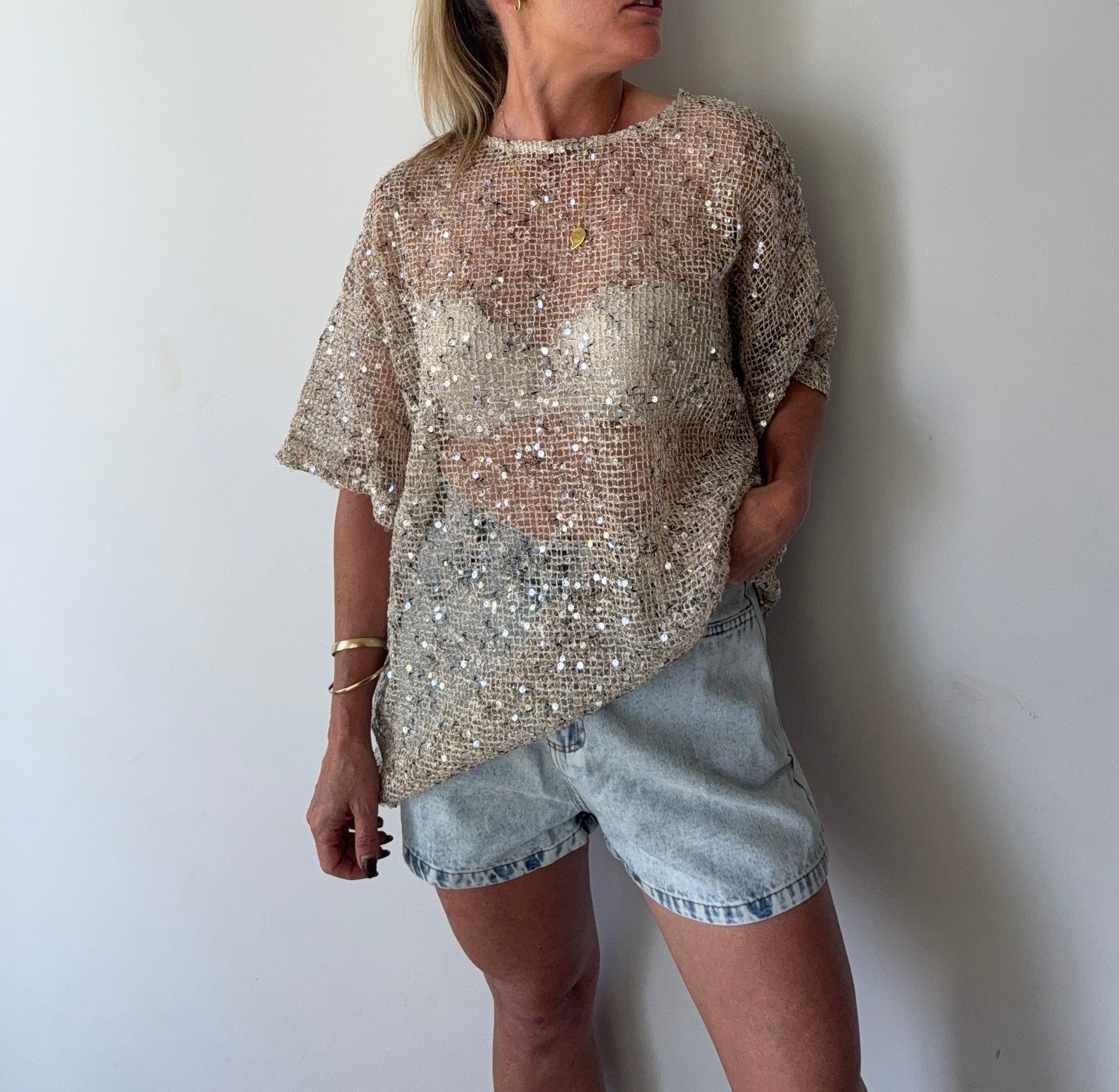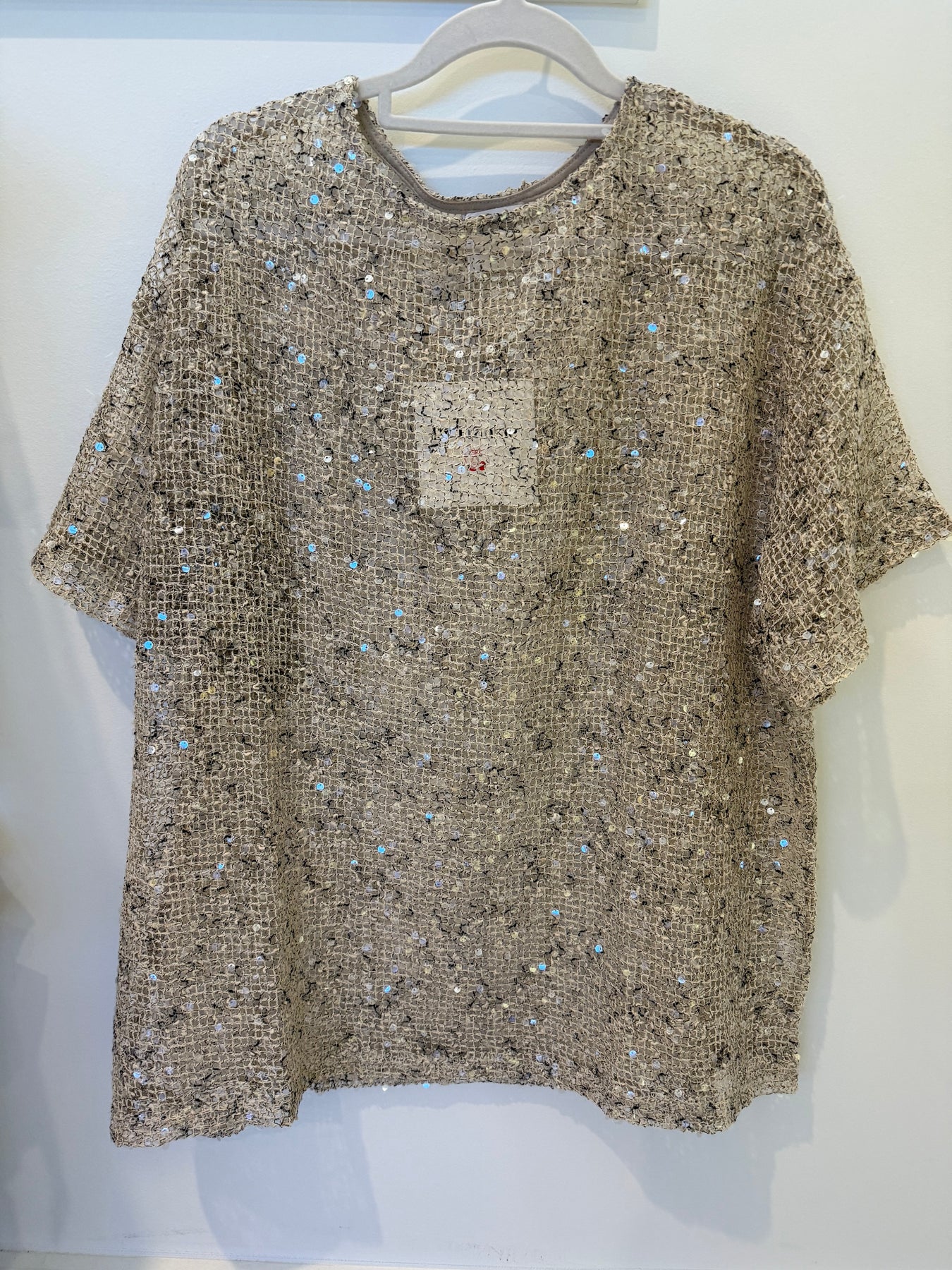 Sequins Knit Oversized Tee-beige- By Frankie