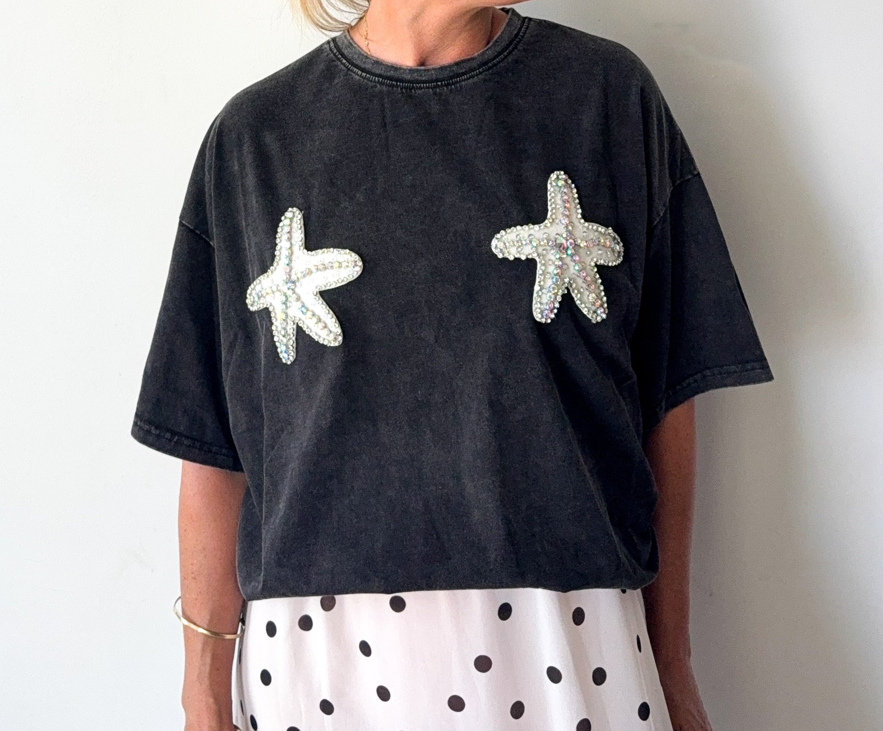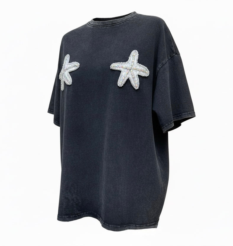 Beaded starfish boobies -black acid wash- By Frankie