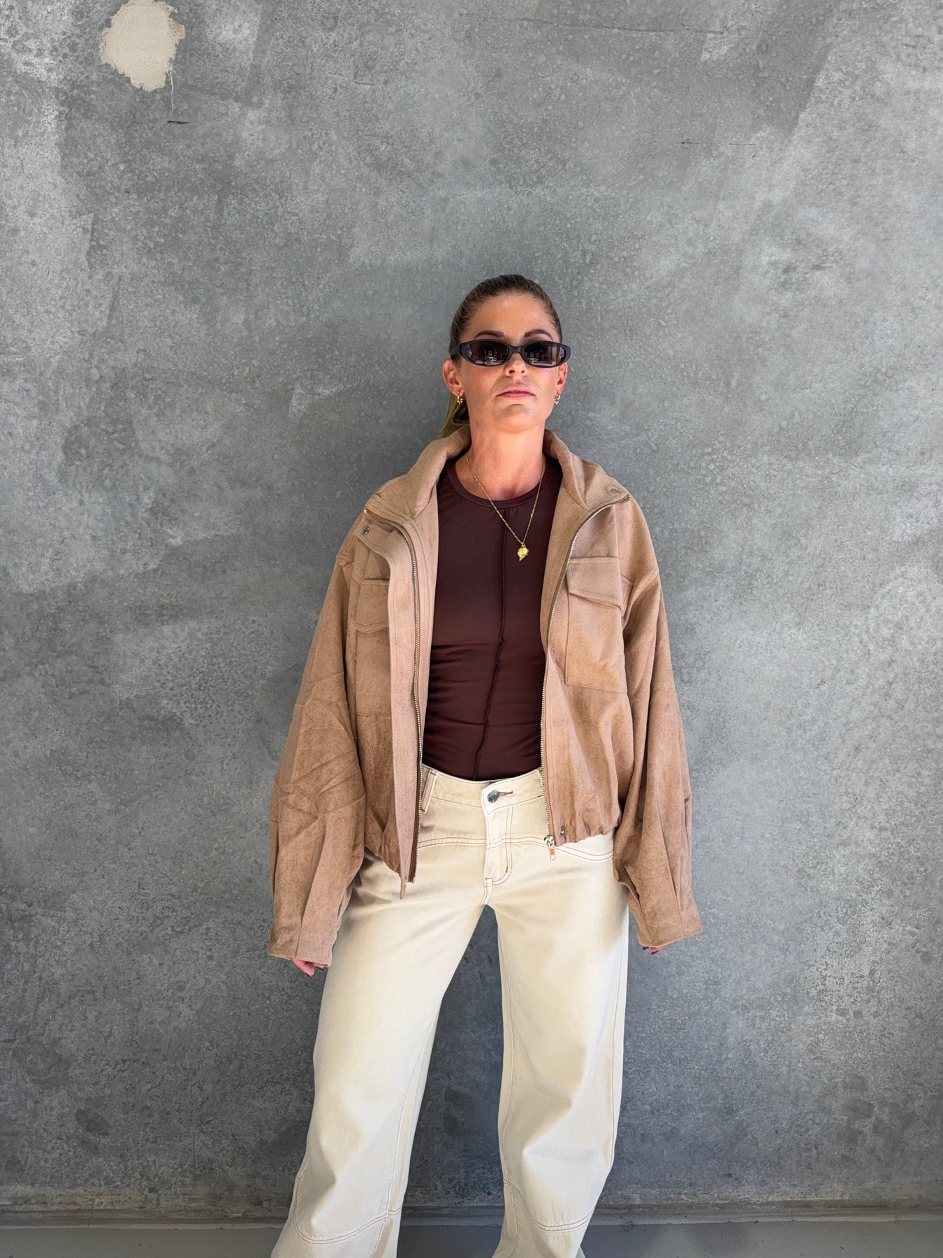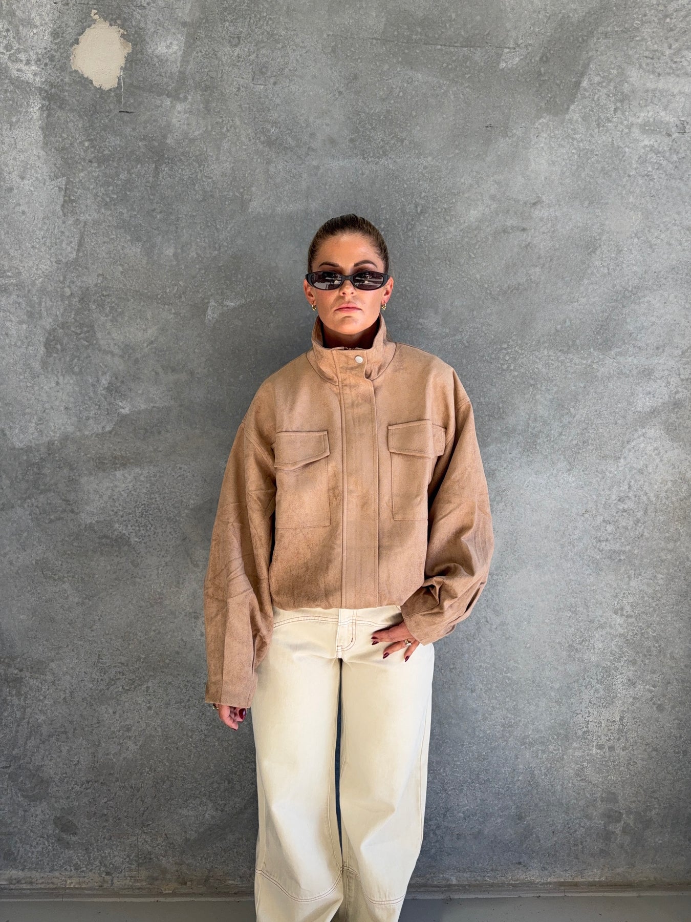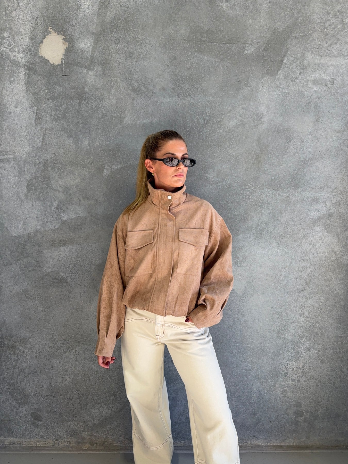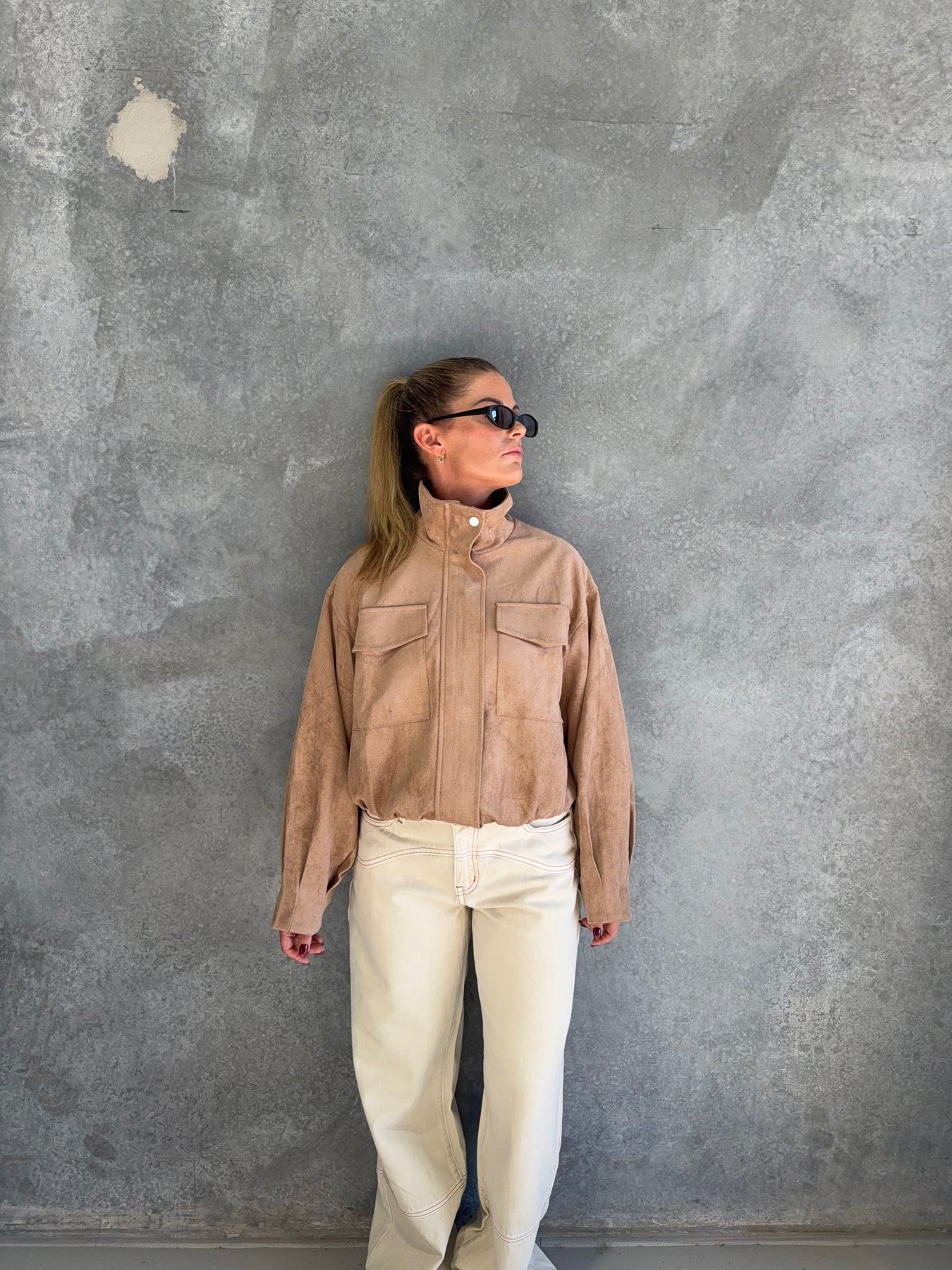 SAMMI FUNNEL NECK FAUX SUEDE JACKET -BEIGE - By Frankie
