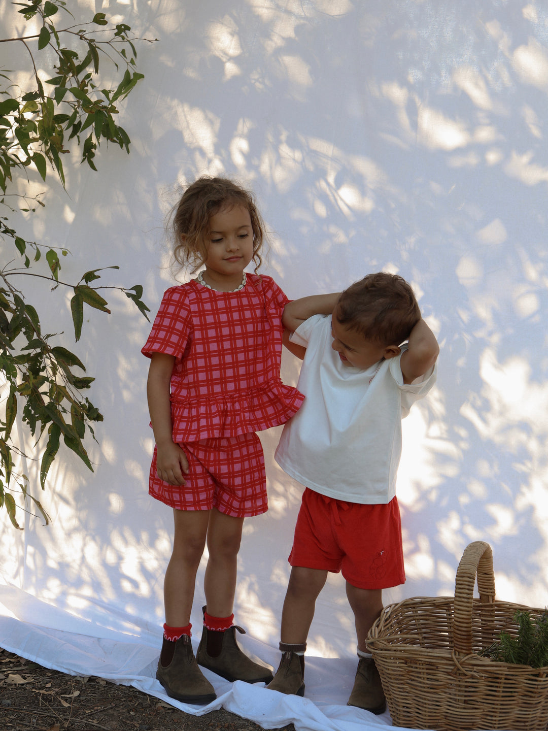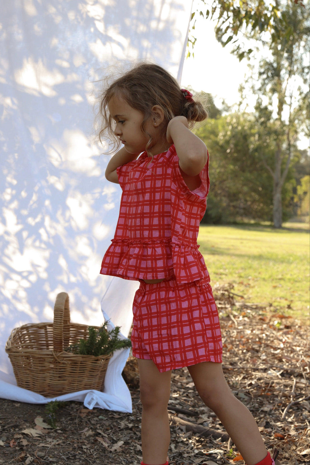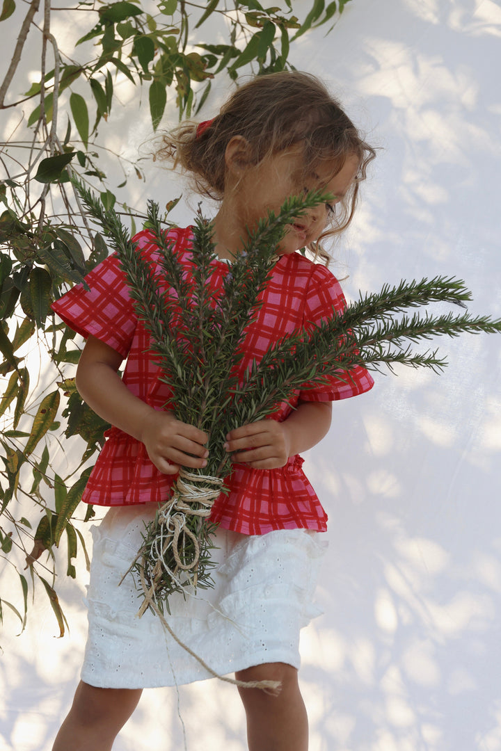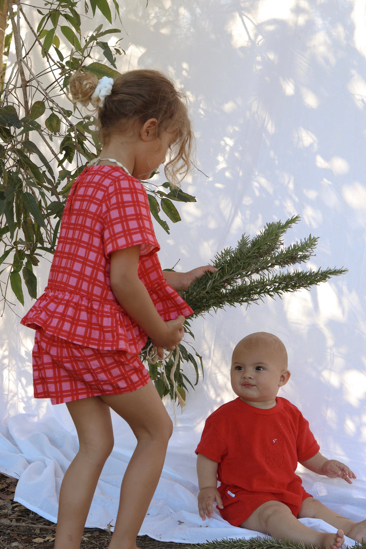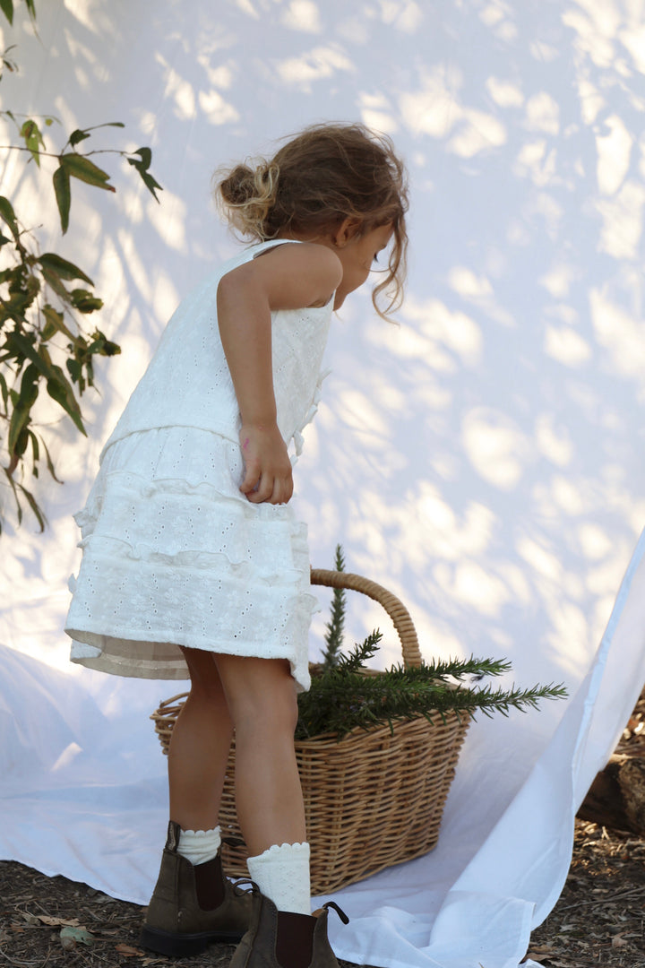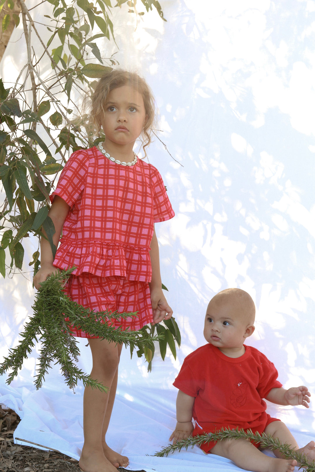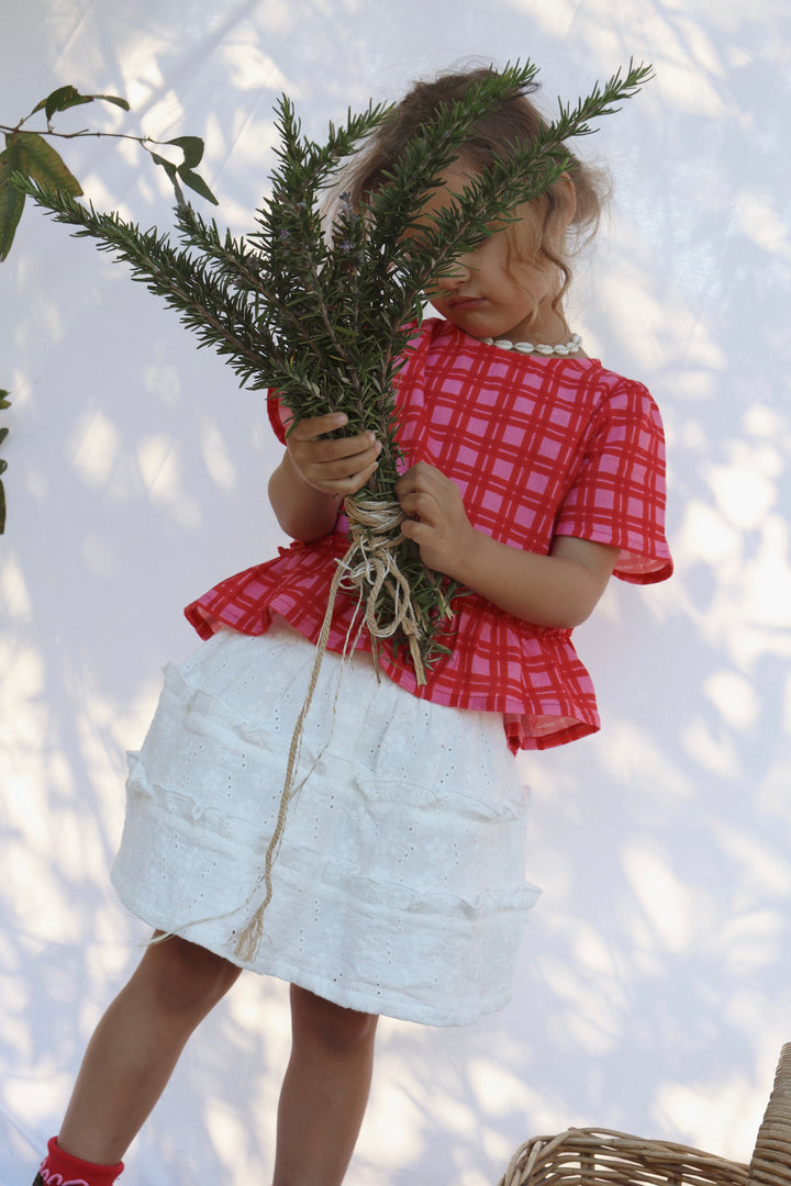 Cotton skirt in our detailed Laurel fabric with frill detailing and elastic waist. Mix and match with items from our Christmas collection.