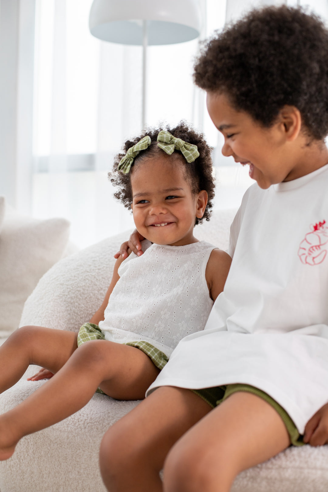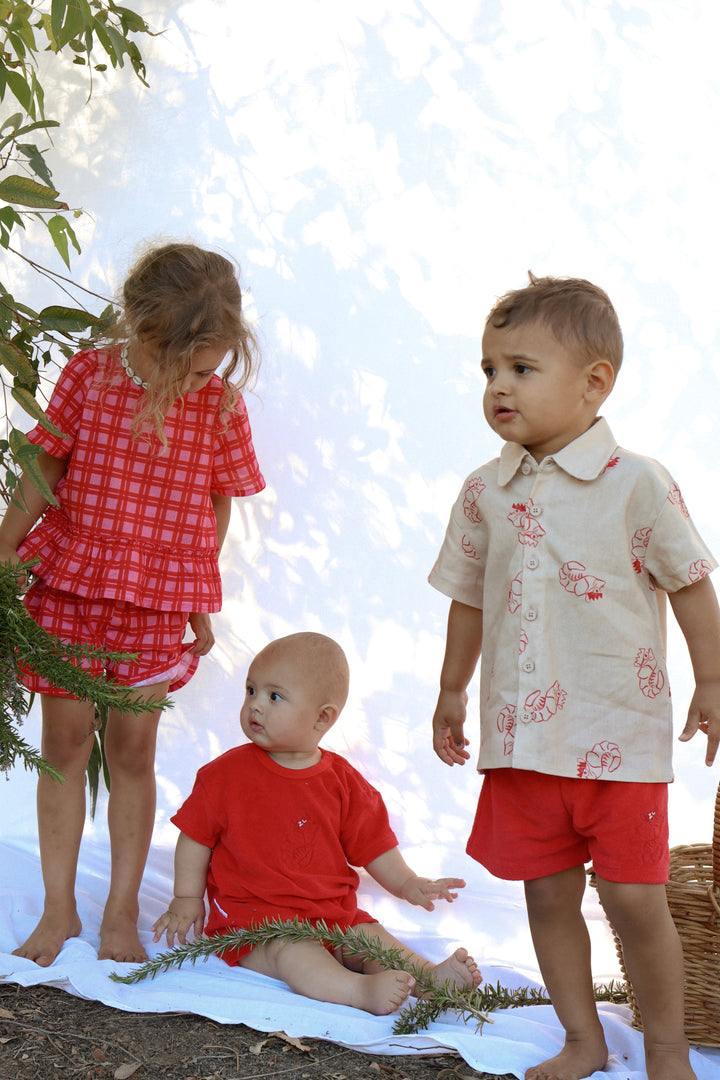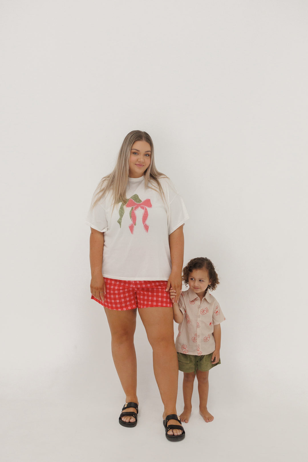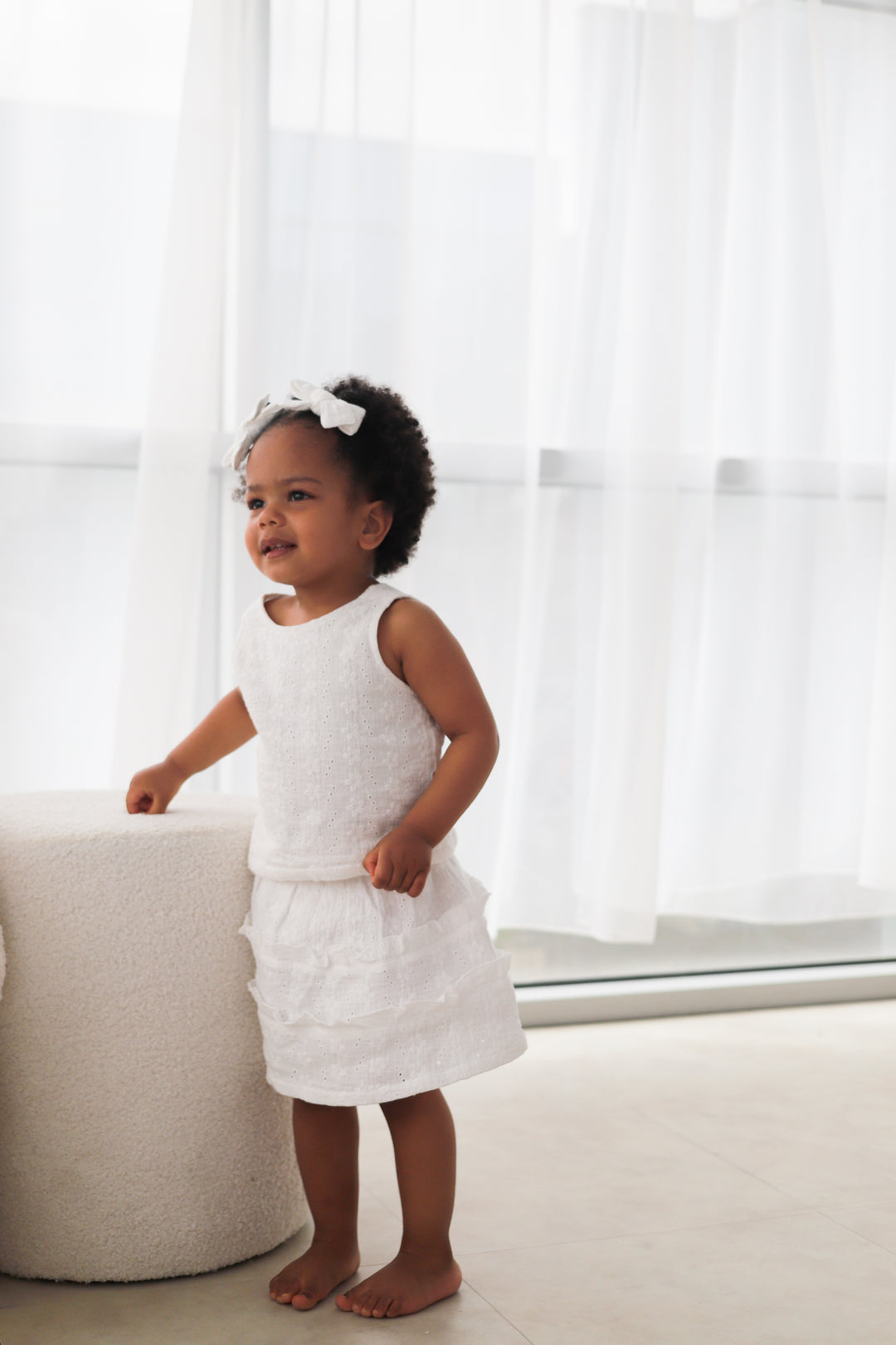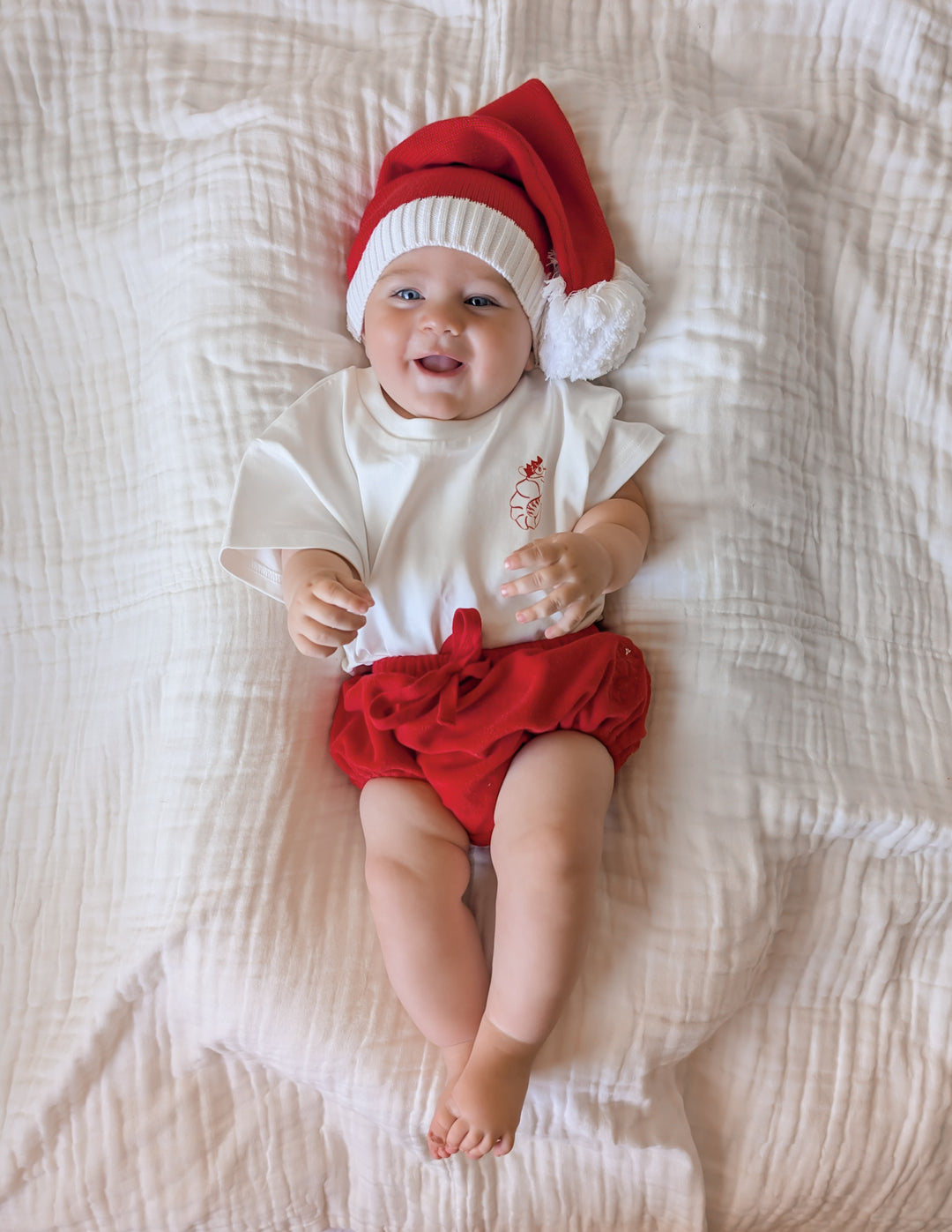 Cotton skirt in our detailed Laurel fabric with frill detailing and elastic waist. Mix and match with items from our Christmas collection.
