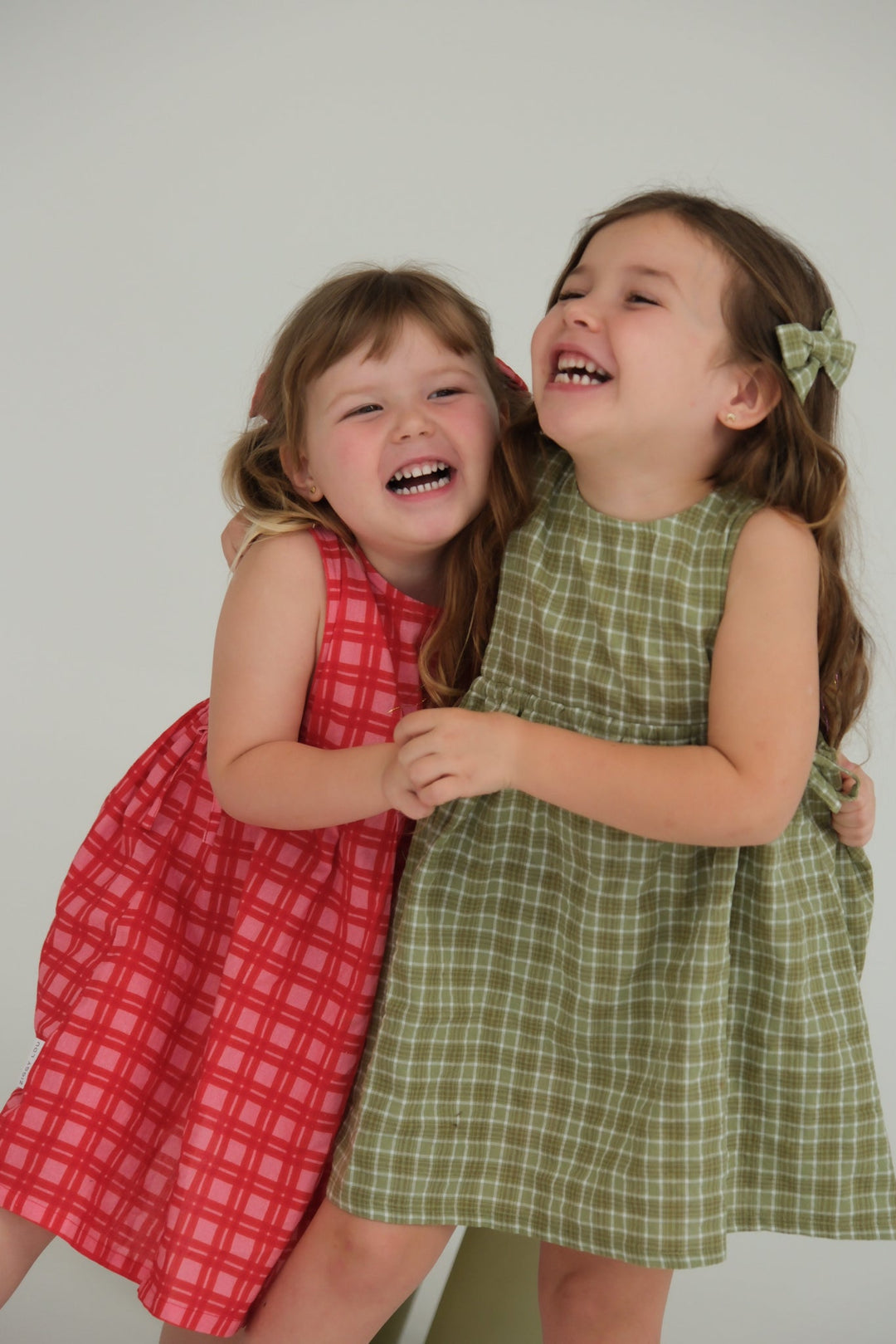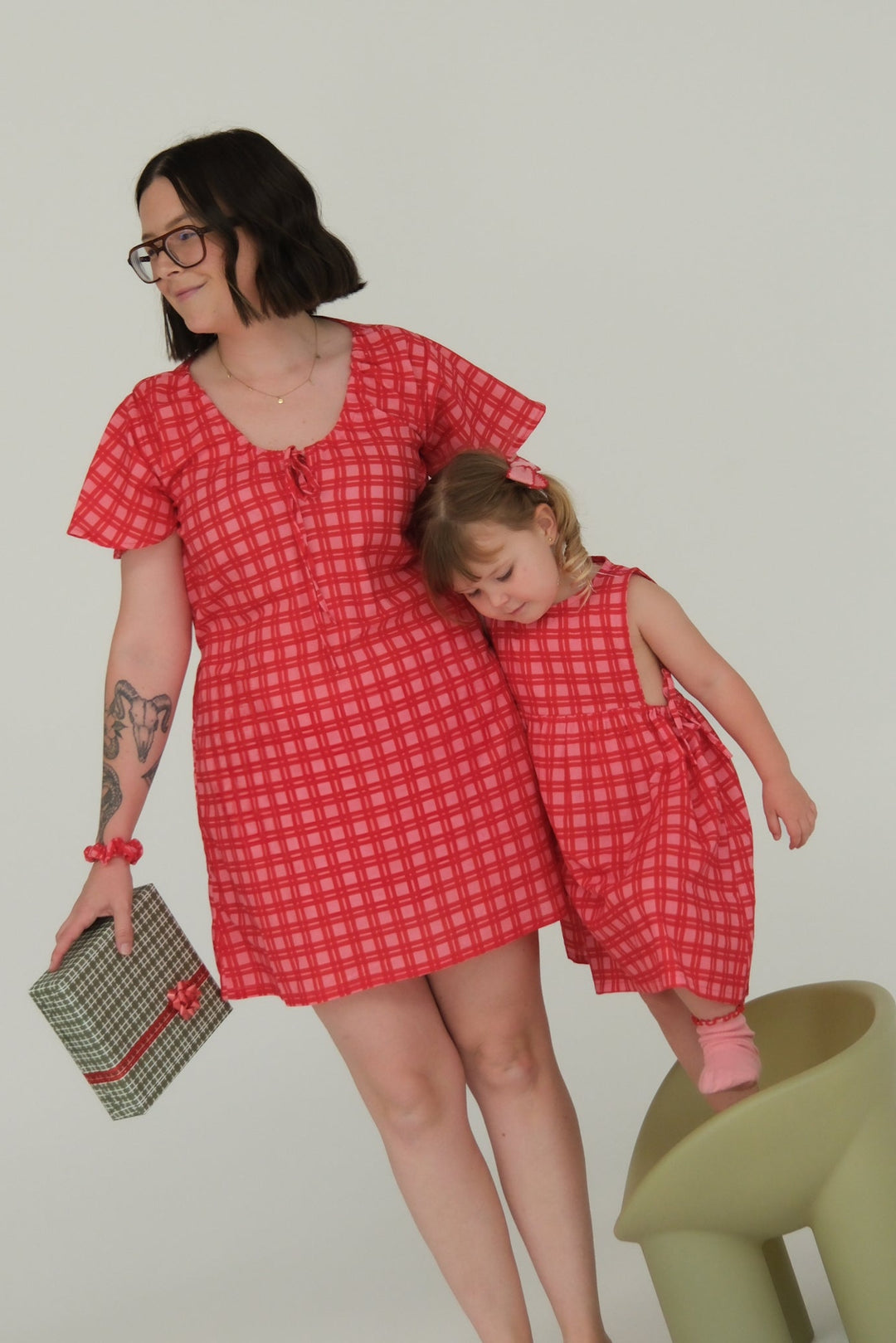 Cotton dress featuring our exclusive Jolie print. Adjustable ties at waist and buttons on the back for easy on/off. Mix and match with items from our Christmas Collection.