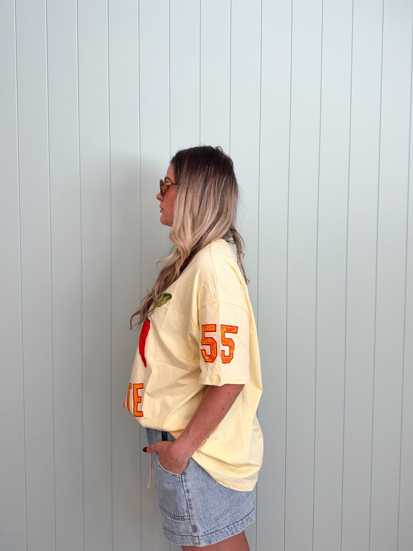 Sizing should be based on desired fit. The tee is designed to be oversize, we would recommend the following guide: