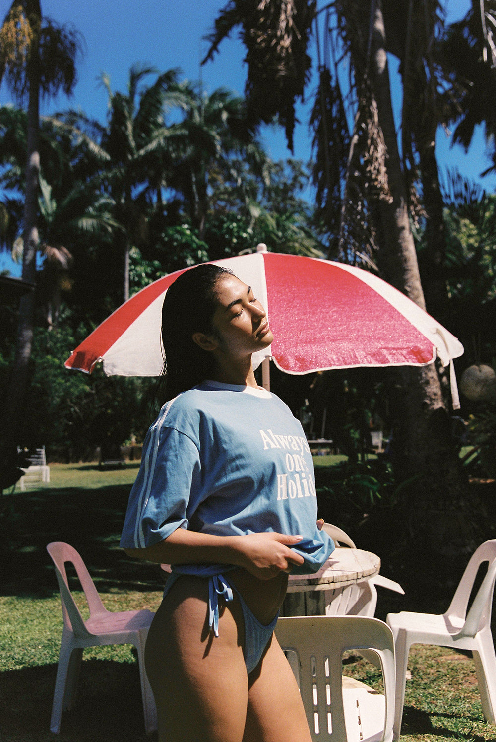 Regular price $99.99 Save Liquid error (snippets/product-template line 131): Computation results in '-Infinity'%The Always On Holiday Tee says it all. Drenched in dusk blue with a crackle print finish, it's an ode to carefree days and salty skin.